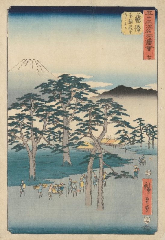 Fujisawa: The Nanki Pine Grove with Mount Fuji to the Left, no. 7 from the series Collection of Illustrations of Famous Places near the Fifty-Three Stations [Along the Tōkaidō]