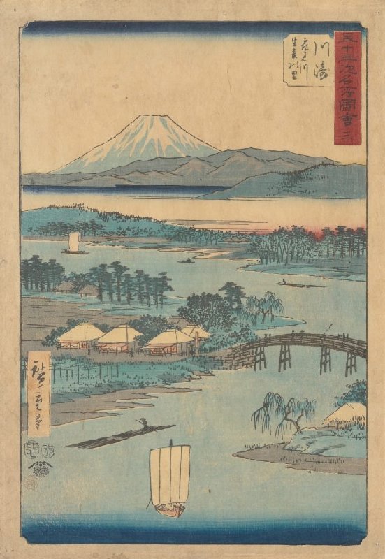 Kawasaki: Het dorp Namamugi aan de rivier Tsurumi, nr. 3 uit de prentenserie Verzameling afbeeldingen van beroemde plaatsen bij de drieënvijftig stations [langs de Tōkaidō]