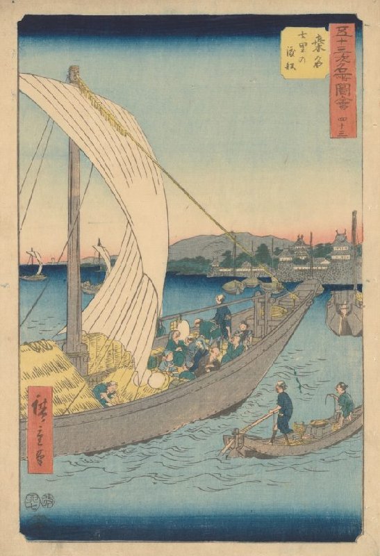 Kuwana: De veerboten van Shichiri, nr. 43 uit de prentenserie Verzameling afbeeldingen van beroemde plaatsen bij de drieënvijftig stations [langs de Tōkaidō]