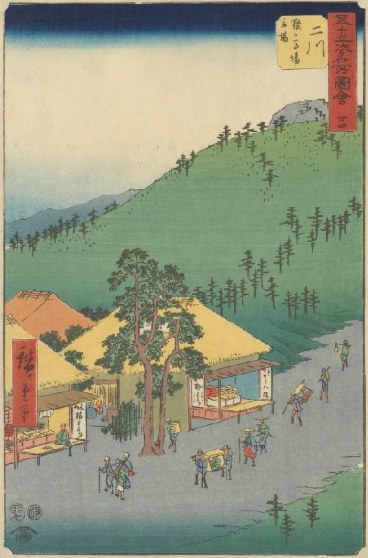Futagawa: De rustplaats Sarugababa, nr. 34 uit de prentenserie Verzameling afbeeldingen van beroemde plaatsen bij de drieënvijftig stations [langs de Tōkaidō]